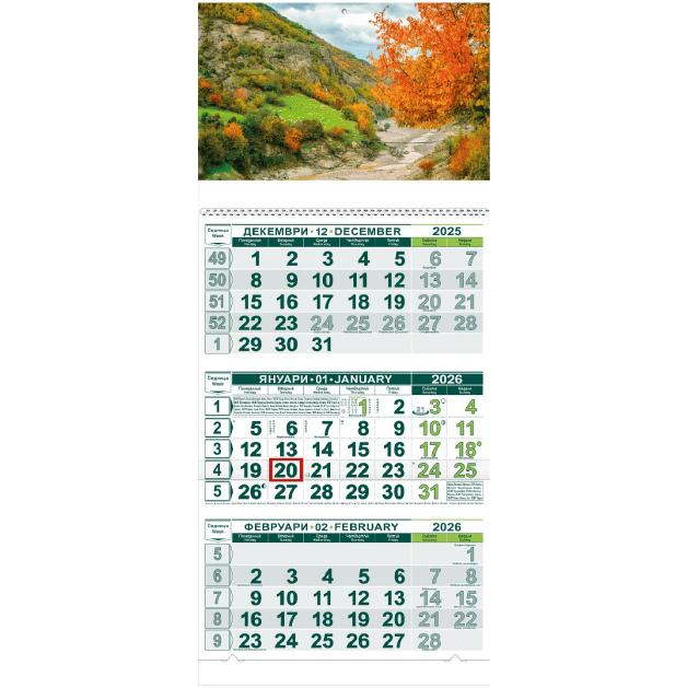 Работен календар КС 2 готова глава №5 е настолен календар с три календариума, подходящ за офиси, дом и корпоративни цели. Календарът съдържа календариум на два езика – български и английски, което го прави универсален и лесен за ползване.