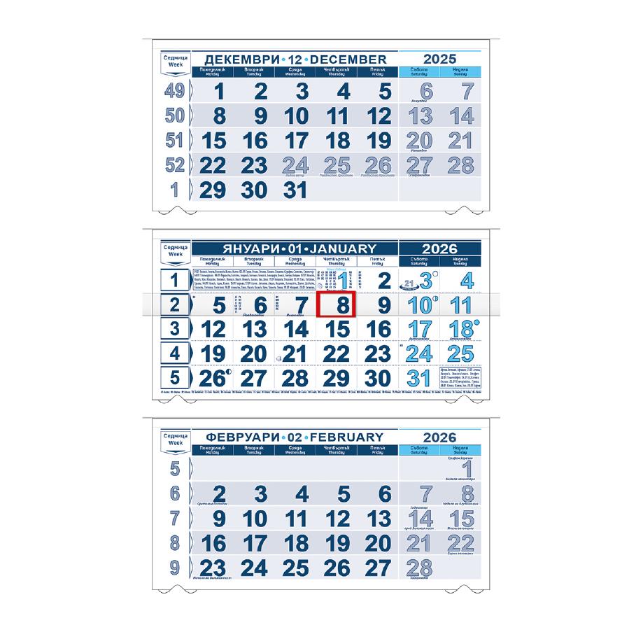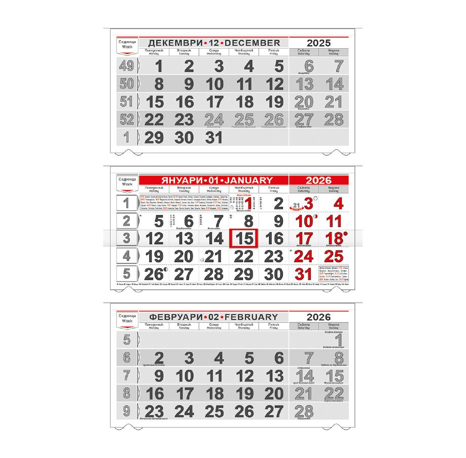 - Бяла подложка, с три календариума, сгъваем