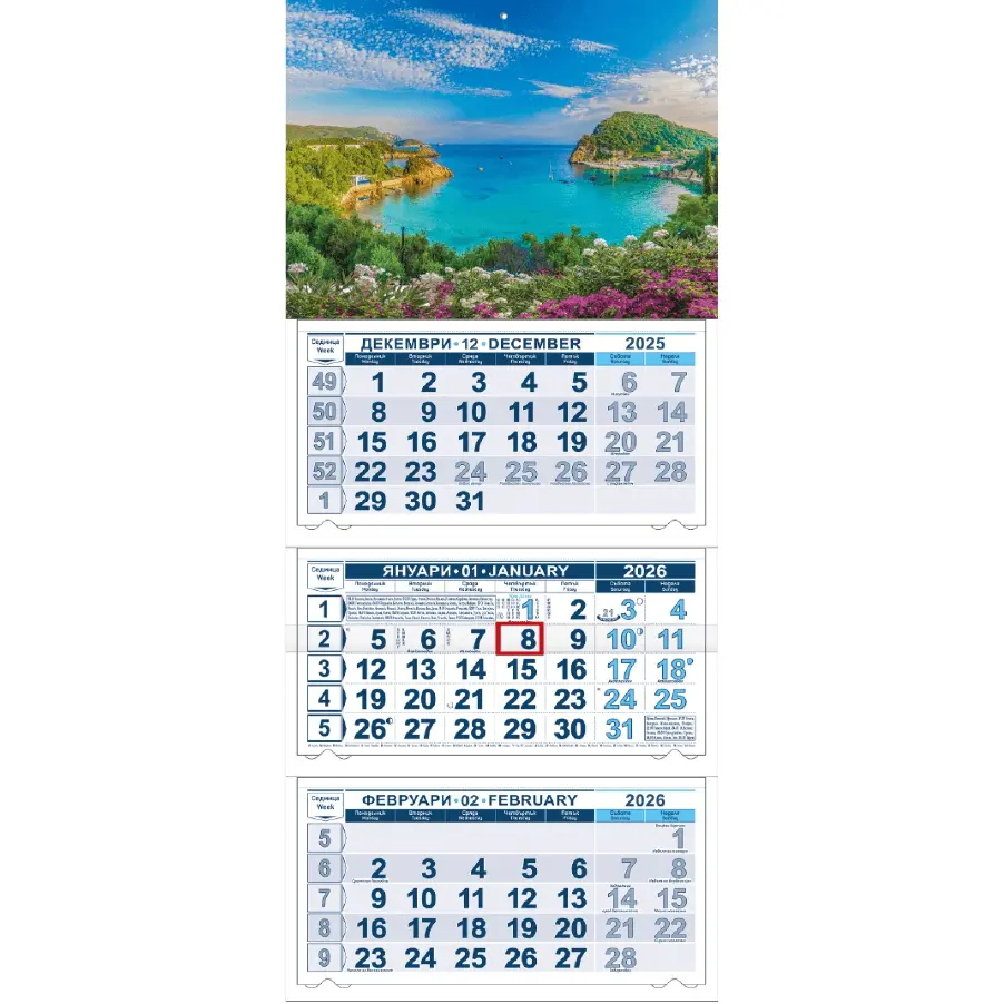 Работен календар КС 250 готова глава №5 е сгъваем настолен календар, подходящ за офиси, домашни бюра и корпоративни цели. Календарът разполага с три календариума, всеки със 12 листа с микроперфорация, за лесно откъсване и удобна употреба.