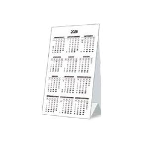 Работен календар пирамидка IDEA е модерно и функционално решение за всеки офис. Тялото включва три календариума с ясно обозначени официални празници и лунни фази, както и прозорче за отбелязване на текущата дата, осигуряващо лесна ориентация през цялата година.
