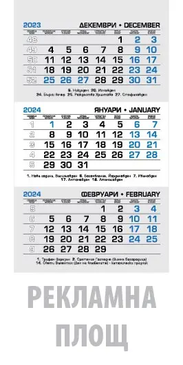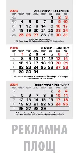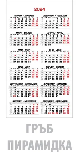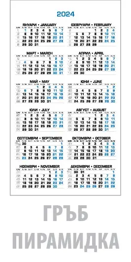 Работен календар пирамидка лепен е практичен и удобен настолен календар, подходящ за офиси, търговски обекти и домашни бюра. Тялото съдържа три календариума с прозорче за отбелязване на текущата дата, осигуряващо лесна ориентация във времето.