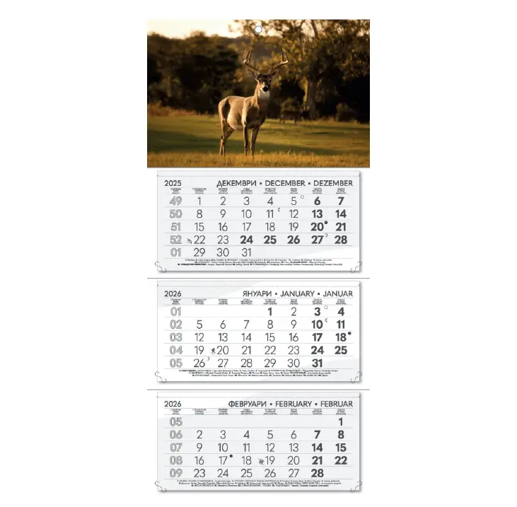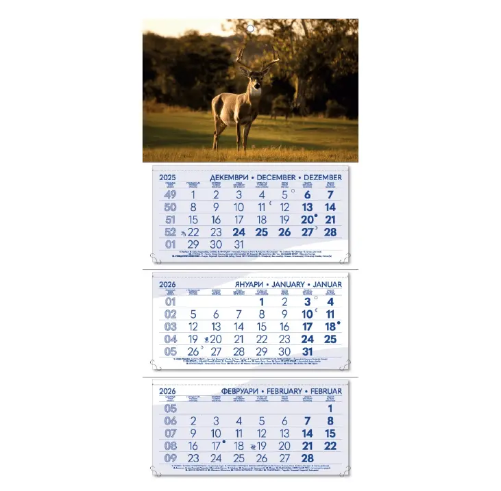 Стилен и практичен работен календар, създаден за удобство и прегледност през цялата година. Модел PK 103 предлага три календариума с ясен дизайн и богато съдържание, подходящ за офиси, бизнес среди и корпоративни клиенти.