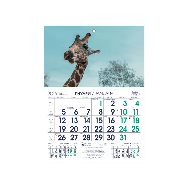 Работен календар РКМ Аванти е практичен настолен календар с един календариум, който предлага удобство и яснота през цялата година. Календарът е подходящ за офиси, дом и корпоративни цели.