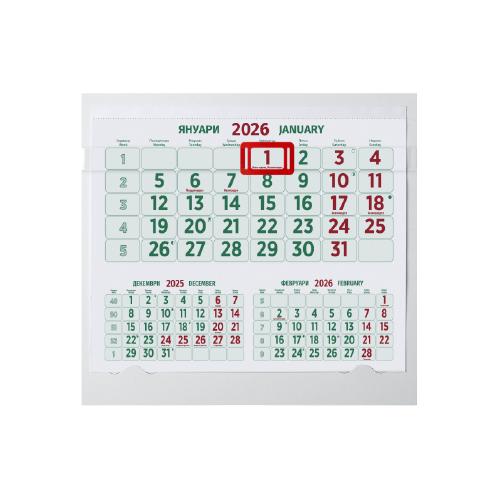 Практичен и удобен работен календар в среден формат, без рекламна глава. Със своя изчистен дизайн и ясно подредени месеци, този календар е отличен избор за офиса или дома. Оборудван е с прозорче за лесно отбелязване на текущата дата.