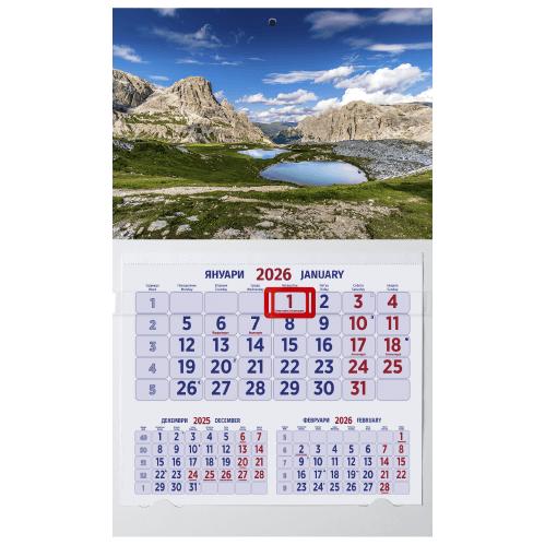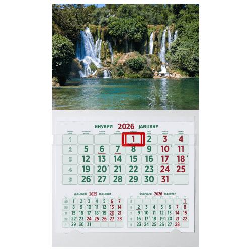 Този работен календар съчетава практичност и естетика с готова средна глава, украсена с красиви природни пейзажи. Класическият му дизайн го прави подходящ както за офиса, така и за дома, като добавя стил и уют към всяко пространство.