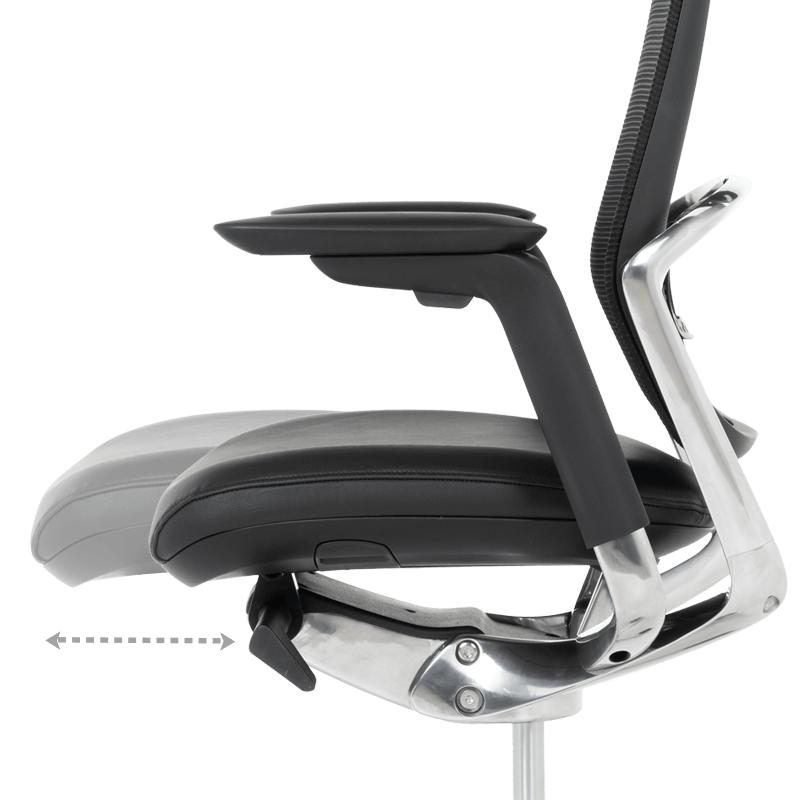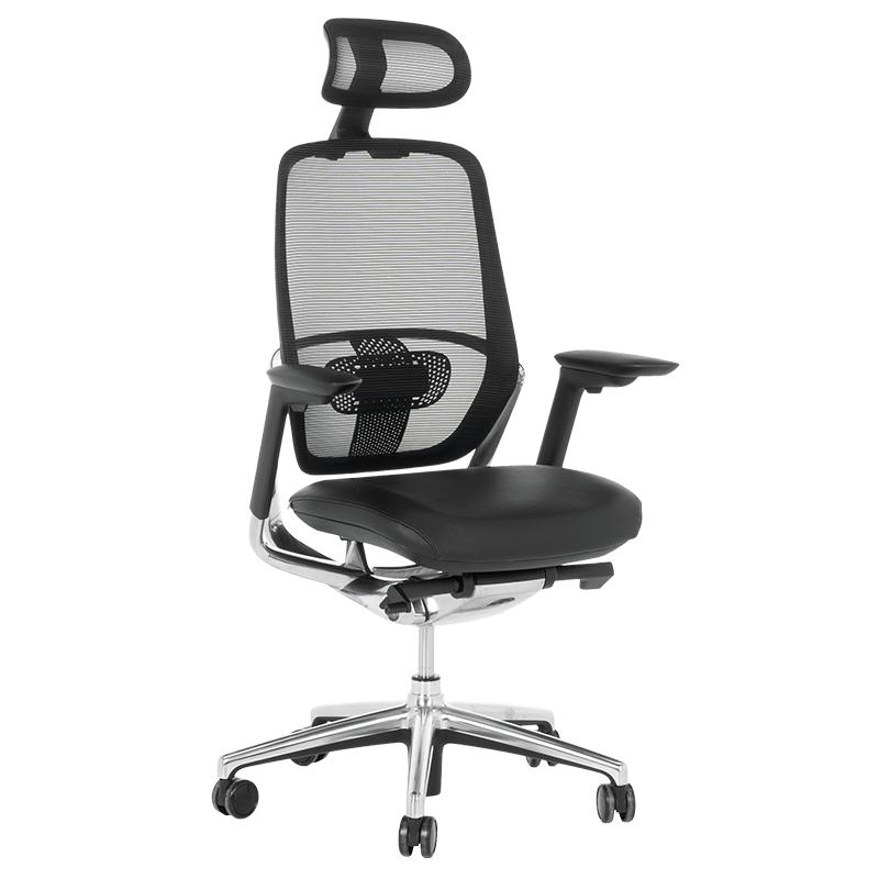 - Ергономична седалка и облегалка, тапицирани във висококачествена естествена кожа и меш