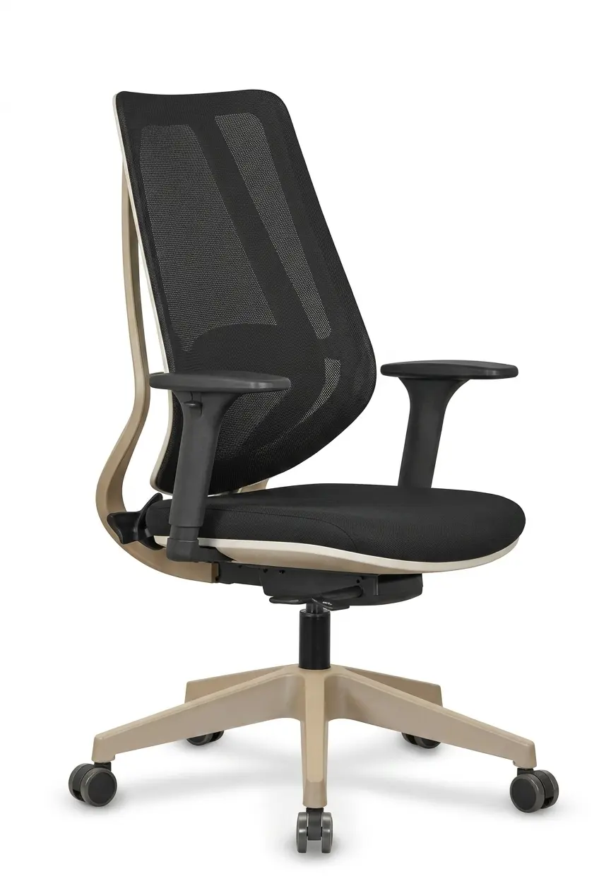 Работен стол ДАКРИС MRV 27/37 съчетава елегантен дизайн и висока функционалност, което го прави отличен избор както за модерни офис пространства, така и за домашни работни зони. Моделът впечатлява с изчистена линия и стилна рамка в цвят капучино, която внася усещане за топлина и съвременен характер в интериора.