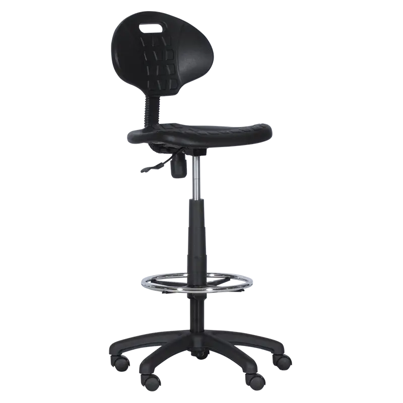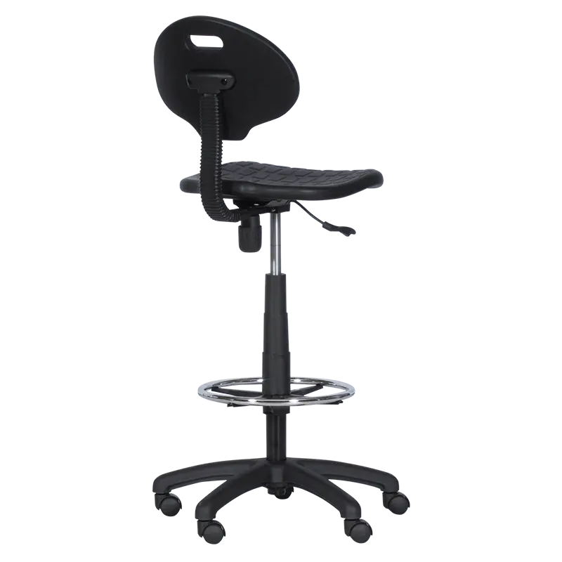 Работен стол ДЕАН е удобен работен офис стол с изчистен дизайн, изработен от полиуретанова пяна. Той разполага с функция за коригиране на височината и стъпенка за краката.