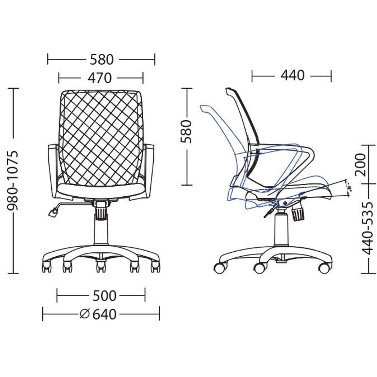 Работен стол ФАНИ е удобен офис стол с голяма седалка, извита мрежеста облегалка и подлакътници. В основата му е вграден газов амортисьор за регулиране на височината, както и люлеещ механизъм.