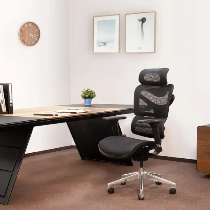 Работен стол ХЕРМЕС е ергономичен офис стол, които впечатляват с модерен дизайн, удобство и функционалност. Създаден за хора, които прекарват над 8 часа в седнало положение, този стол предлага индивидуално настройване за максимален комфорт. Регулируема дълбочина на седалката и височина на облегалката, идеални за всеки ръст. 3D подлакътници и регулируема опора за глава за допълнително удобство.