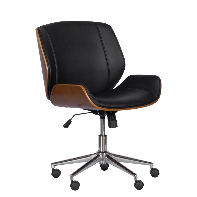 Работният стол КАТРИН е стилен модел, изработен от висококачествени материали. За задната част на облегалката е използвано дърво, което придава нестандартна визия на стола, а основата, направена от хром, гарантира стабилност.