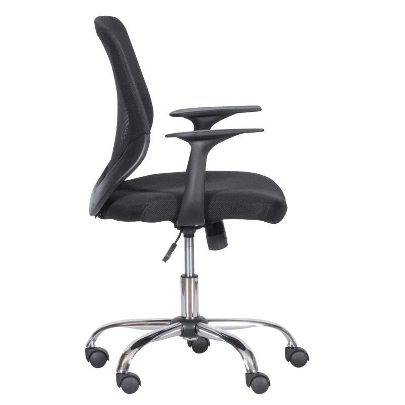 Работен стол КИАР е практичен и удобен модел със здрава хромирана основа, подлакътници и регулируем люлеещ механизъм.