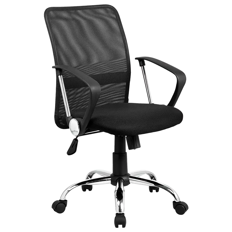 Работен стол КРЕМЕНА има модерно, стилно излъчване и комфортни седалка и облегалка. Дизайнът му съчетава комбинация от различни материали – здрава текстилна мрежа, еко кожа, полипропилен и хром. Столът е с регулируема височина, а за допълнително удобство в основата му е вграден и регулируем люлеещ механизъм.