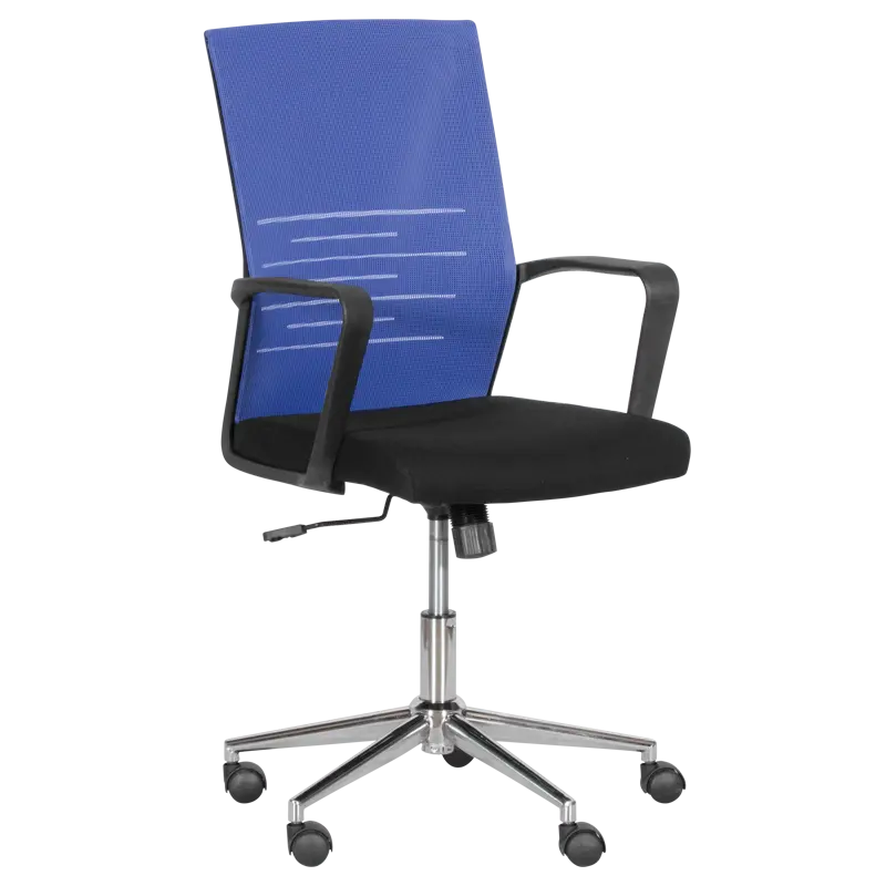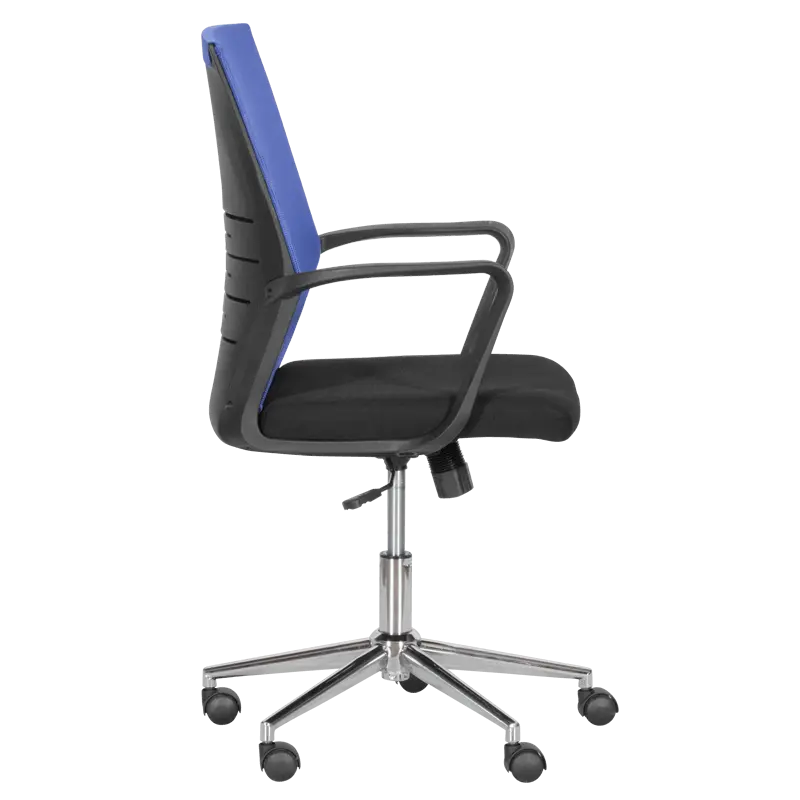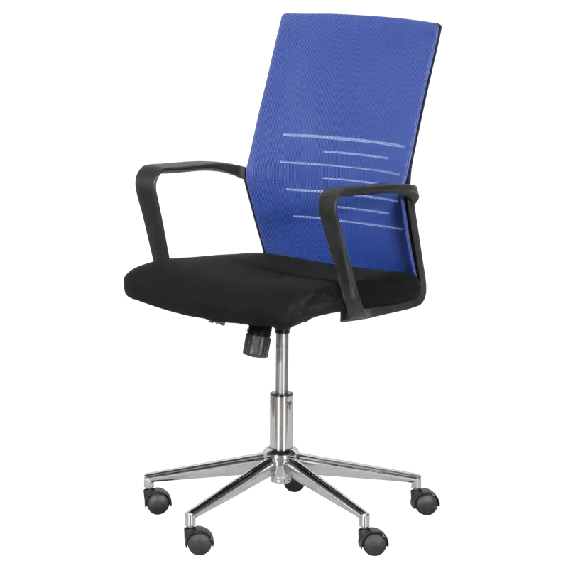 Работен стол МИЛА е удобен работен офис стол с регулируем люлеещ механизъм и вграден газов амортисьор за коригиране на височината. Неговият модерен дизайн съчетава различни цветове и материи от висококачествена дамаска в черен цвят за седалката, здрава мрежа за облегалката и полипропилен за основата и подлакътниците.