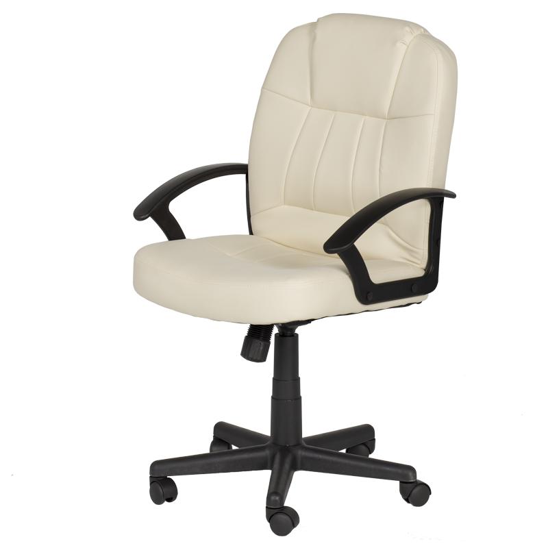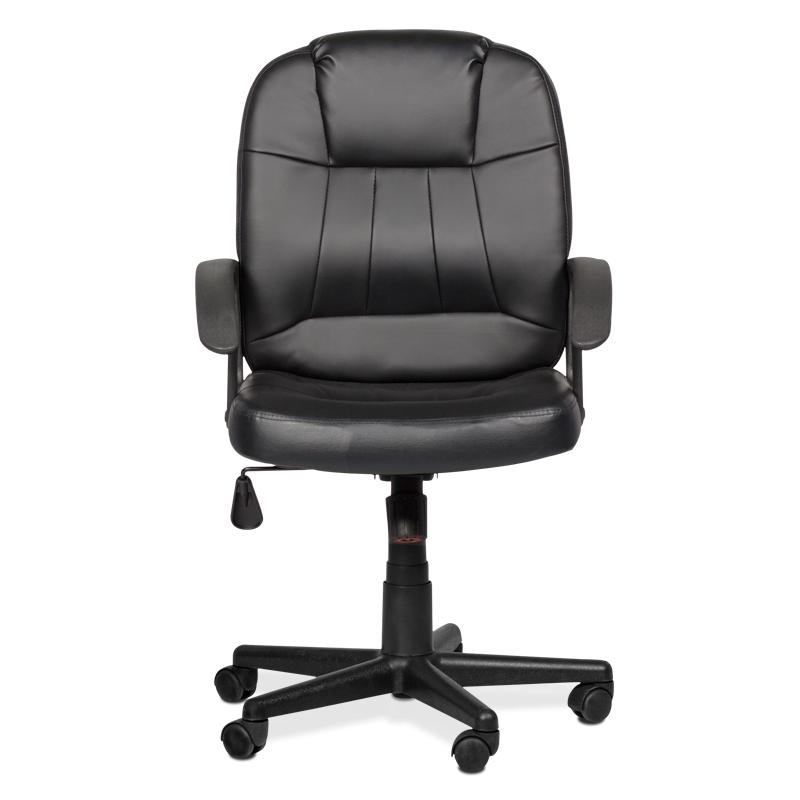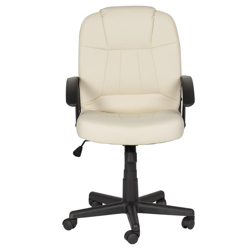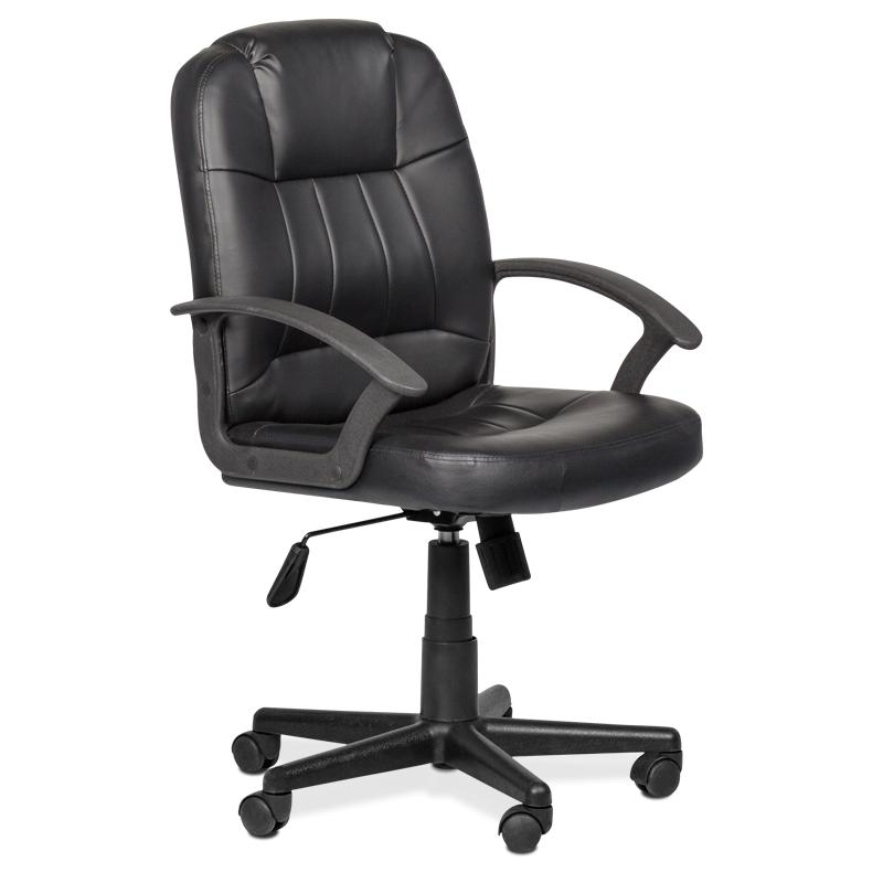 Работен стол МУСАЛА е семпъл и изчистен модел с извити подлакътници и регулируем люлеещ механизъм. Израотена от мека еко кожа и полипропиленова основа.