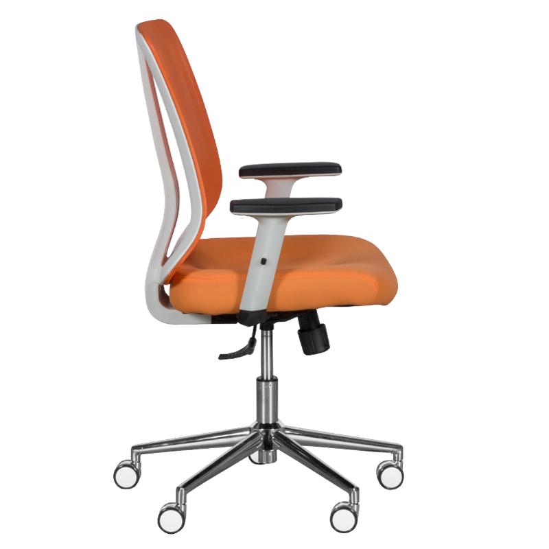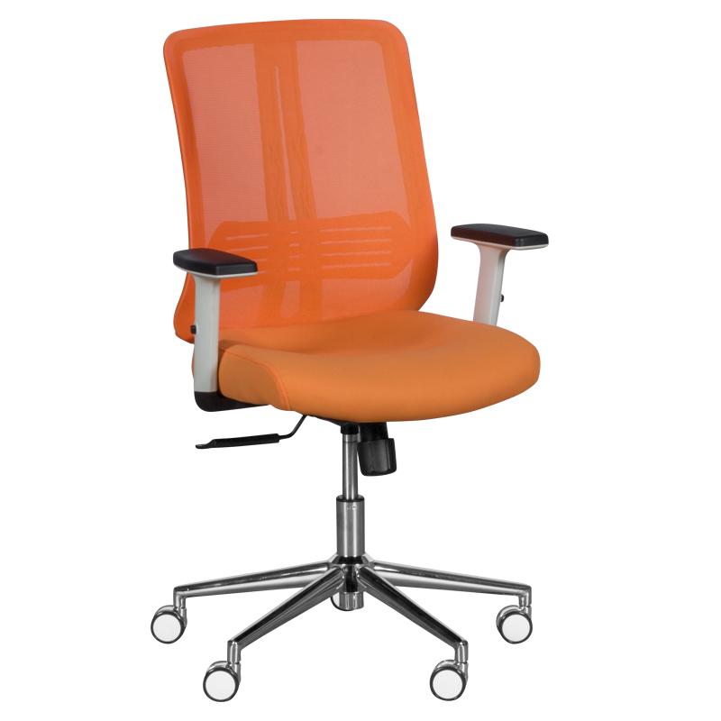 Работен стол РАДИ е президентски стол с иновативен дизайн, който ще внесе цвят и модерен стил в офиса. Той е изработен от висококачествена дамаска, здрава мрежа, хромирана база и регулируеми полипропиленови подлакътници. В основата му е вграден газов амортисьор за коригиране на височината и регулируем люлеещ механизъм.