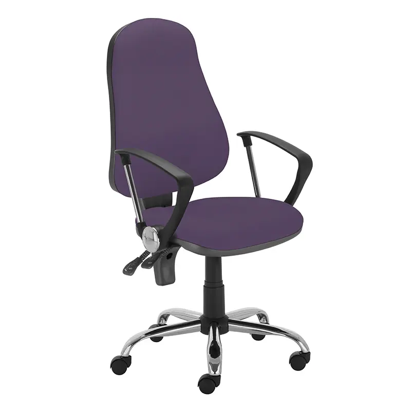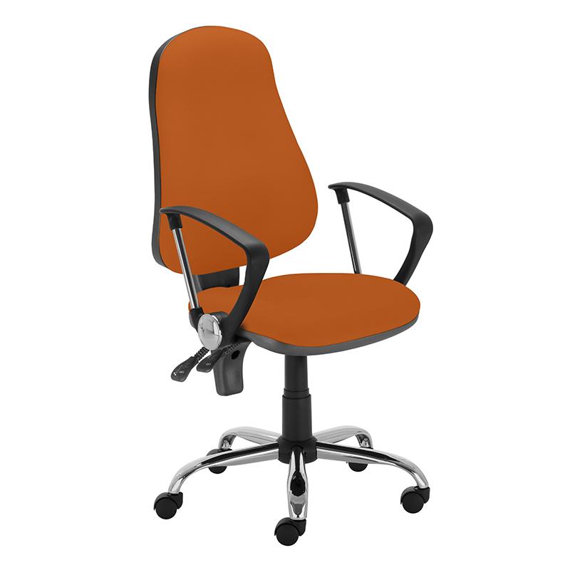 Работен стол РАДОСТИНА се отличава с класически дизайн, комфорт, практичност, функционалност и стабилност. Облицован е с висококачествена дамаска, снабден е с полипропиленови подлакътници, а основата му е изработена от метал с хромирано покритие.