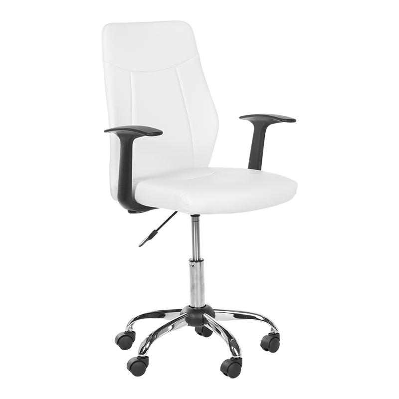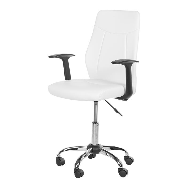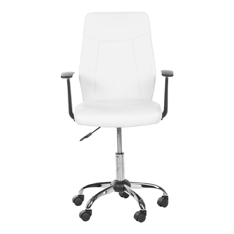 Работен стол РОСИЦА ви предлага стилен дизайн и удобство по всяко време на деня. Седалката и облегалката са изработени от висококачествена еко кожа, която съчетава стил и лесна поддръжка. Газовият амортисьор позволява плавно регулиране на височината, а стабилната петлъчева метална основа с хромирано покритие гарантира здравина и устойчивост. Фиксираните подлакътници добавят удобство по време на работа.