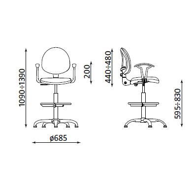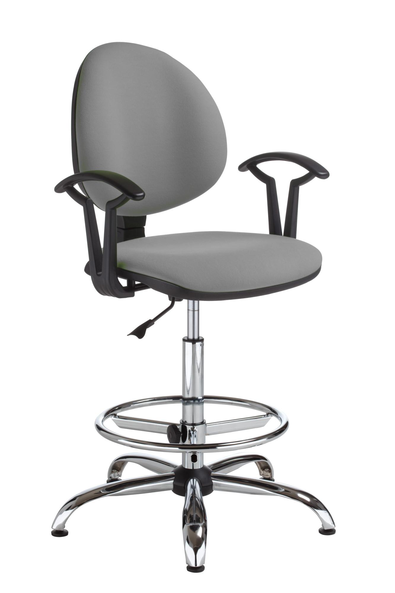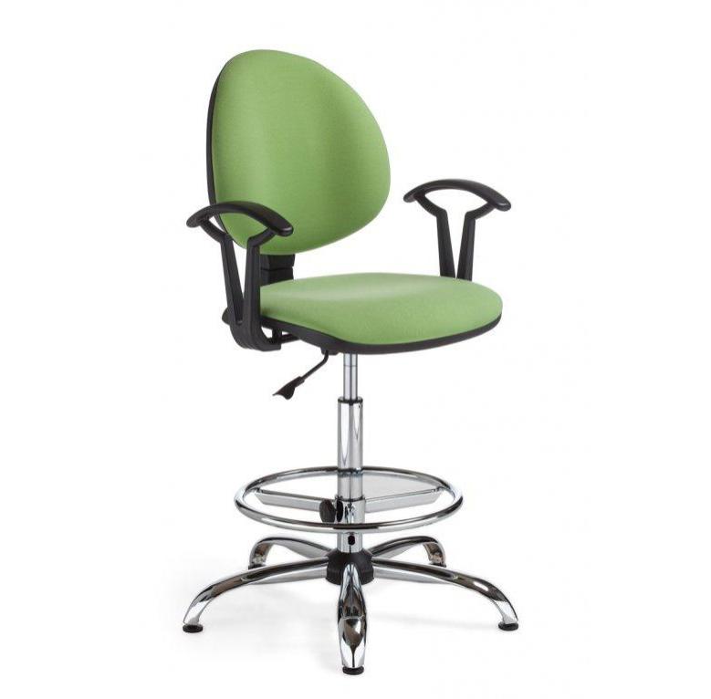Работният стол СМАРТ хром е висок работен стол, тапициран в дамаска. Моделът разполага с газов амортисьор за регулиране на височината и поставка за крака, чиято височина също може да бъде коригирана.