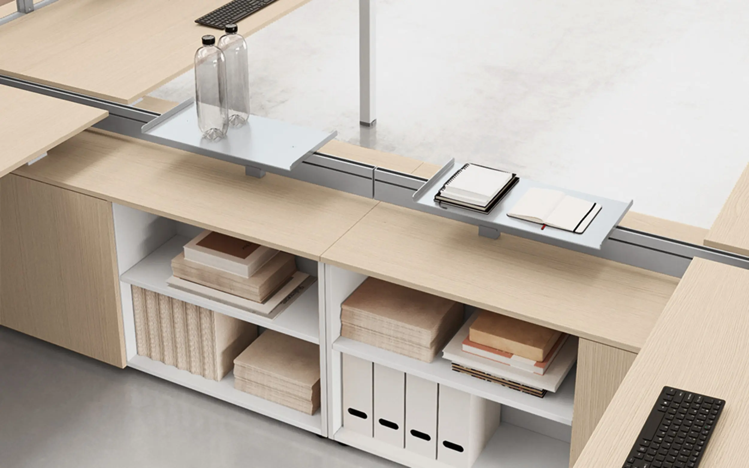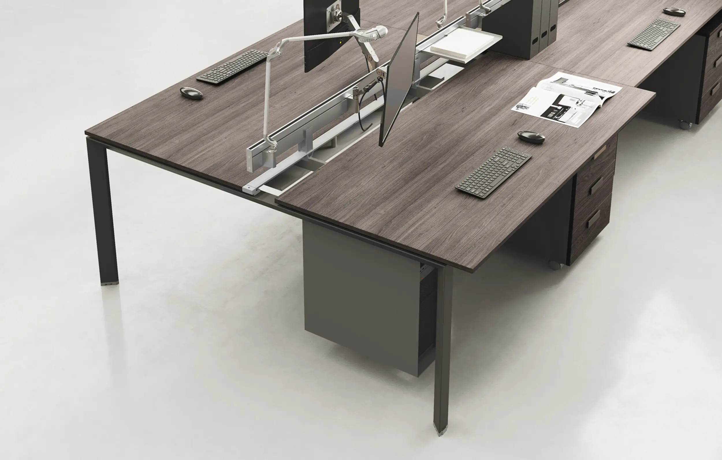 Серията 5th Elemen предоставя възможност за конфигуриране на 2, 3, 4 или 6 работни места, с опция за създаване на модерна и комфортна работна среда. Всички работни места са снабдени с кабелни канали за предпазване на електрическите проводници от механични повреди. Плотовете с плъзгащ механизъм са отлично решение за организиране на функционална и комфортна работна среда. Всеки от тях може да се премества отделно, в зависимост от характеристиките на офис пространството и предпочитанията на служителите.