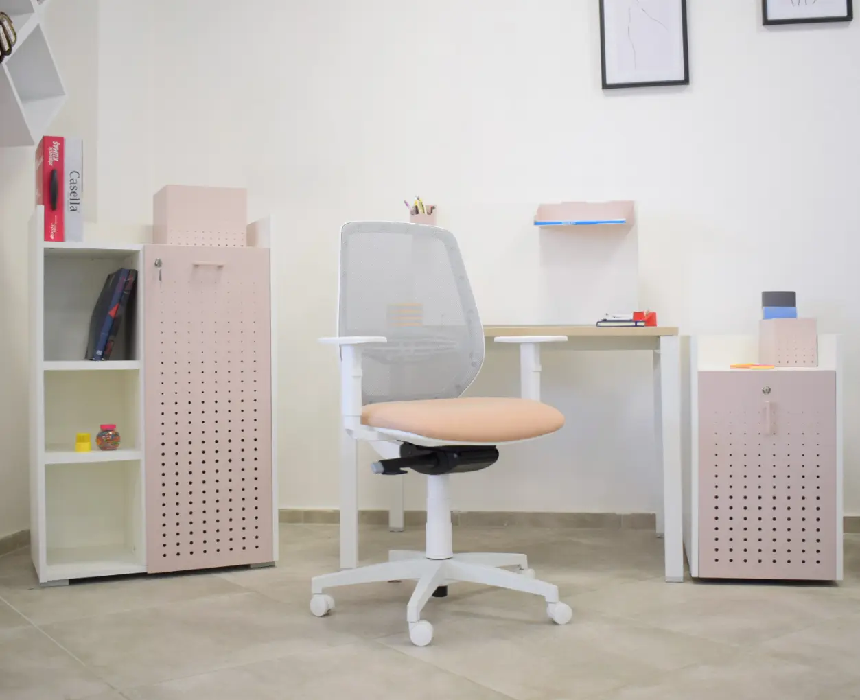 Работната станция OXI COLOR представлява зашеметяваща колекция, в която цветът характеризира композиционните модули и съответно средата, в която са поставени. Работните станции и контейнери са тясно свързани с оперативната функционалност, като са символ на композиционна виртуозност. Станцията включва основно бюро, параванен модел, контейнер, помощен шкаф, декоративни елементи - органайзер, поставка за хартия и моливник. В допълнение ви препоръчваме да го съчетаете с работния стол CAST.