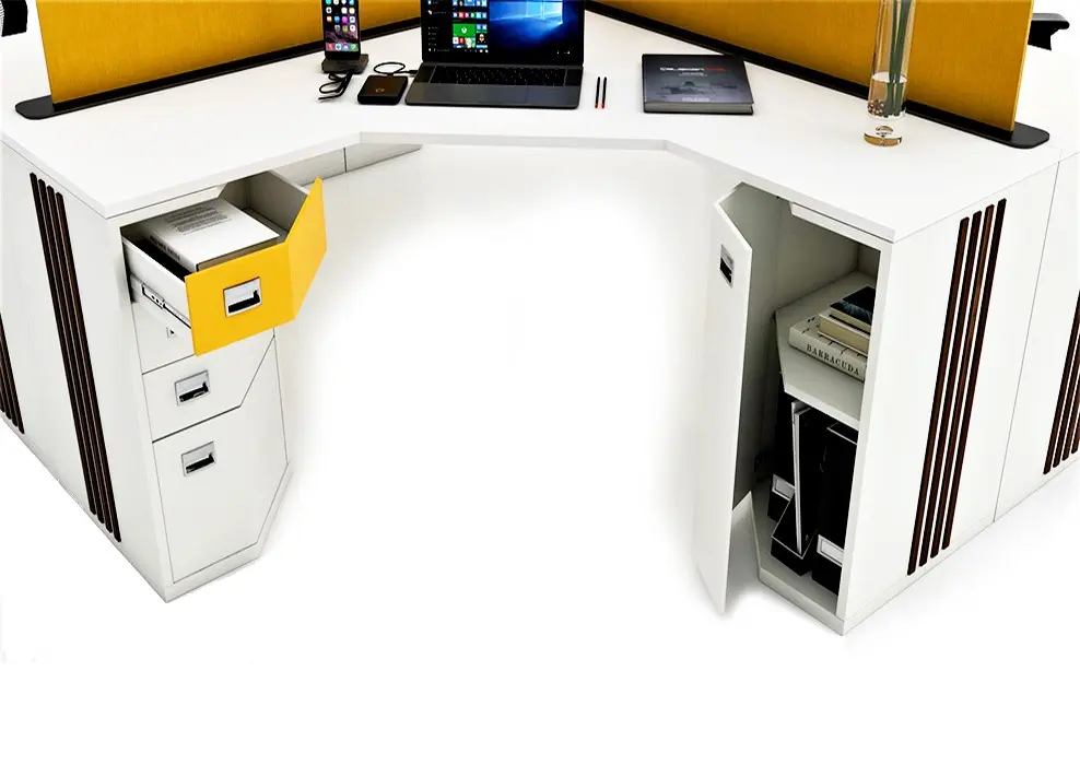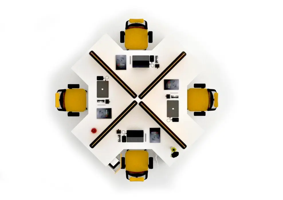 Работна станция XANTHOS предлага четири работни места. Панелите за уединение позволяват на всички служители да се чувстват спокойно и удобно докато работят, като поддържат фокуса и намаляват заобикалящите разсейвания. Всяко работно пространство разполага със собствени места за съхранение на вещи.