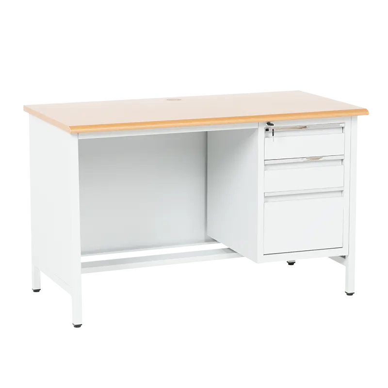Работно бюро BTL 120 J е здраво и функционално решение за офис, работилница или учебна среда. Изработено от праховобоядисан метал с плот от МДФ, то предлага надеждност и удобство. Разполага с три чекмеджета със заключване за сигурно съхранение на документи и принадлежности.
