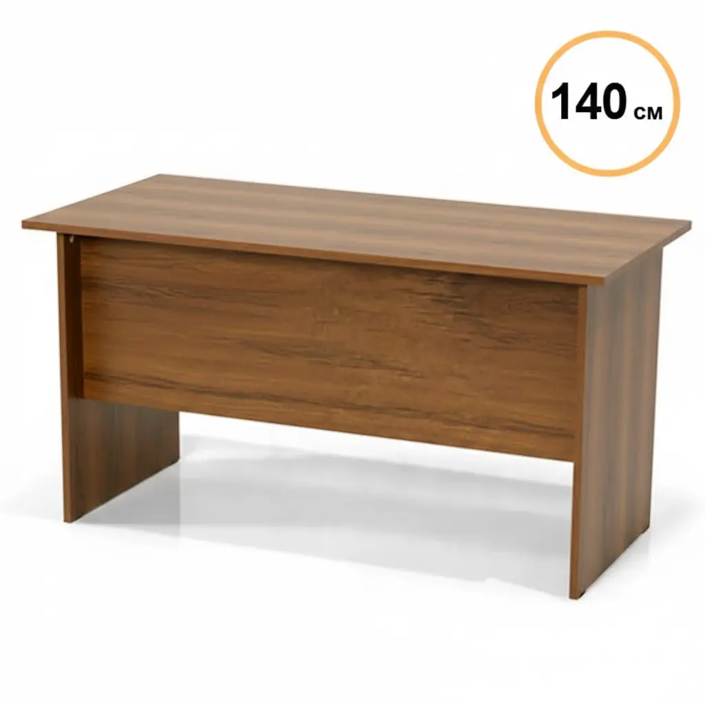 Работното офис бюро 140 см е с изчистен класически дизайн и е подходящо за всеки офис интериор. Изработено е от ПДЧ материал с меламиново покритие с дебелина на плота 30 мм.