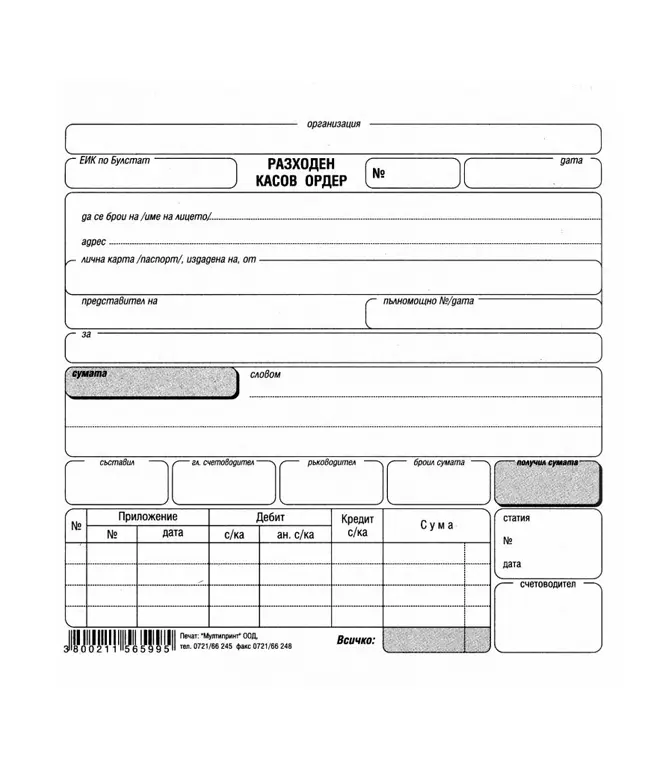 Разходен касов ордер вестник Мултипринт се използва за отчитане на парични средства и е под формата на лепен кочан.