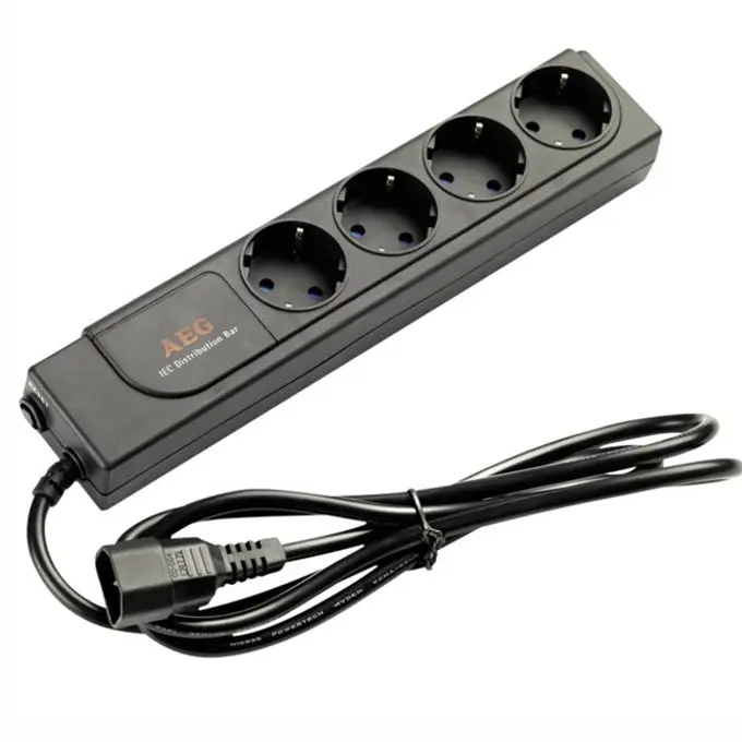 Разклонител AEG IEC C14, 4 гнезда, 1.8м кабел, черен