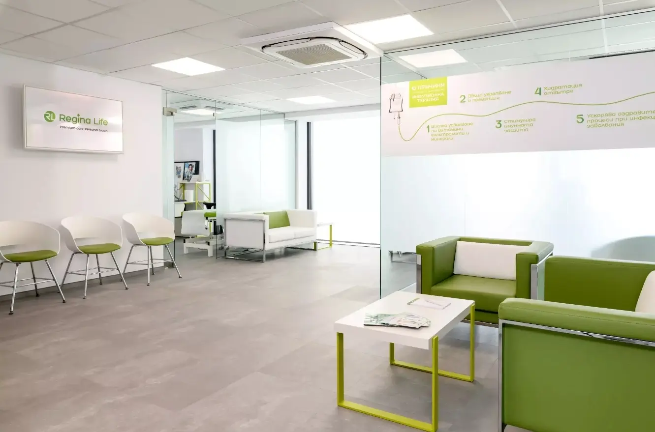 Когато екипът на Regina Life се обърна към нас, целта беше ясна: интериор, който да предразполага, успокоява и вдъхва доверие, без да нарушава естетиката на медицинска среда. Пространството трябваше да е чисто, светло и функционално, но също така човешко, приятно и приветливо - усещане, което пациентите да запомнят и с което да се върнат.