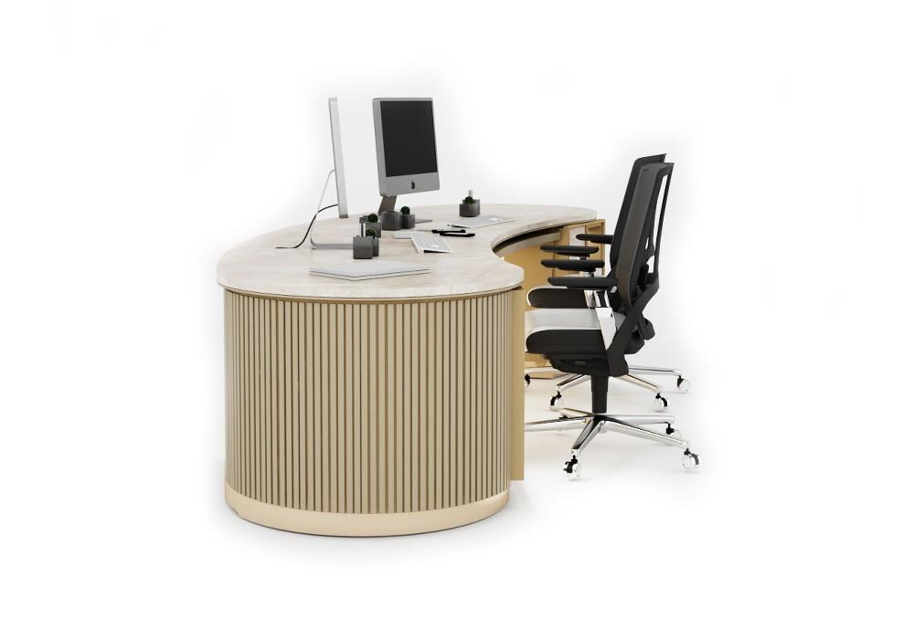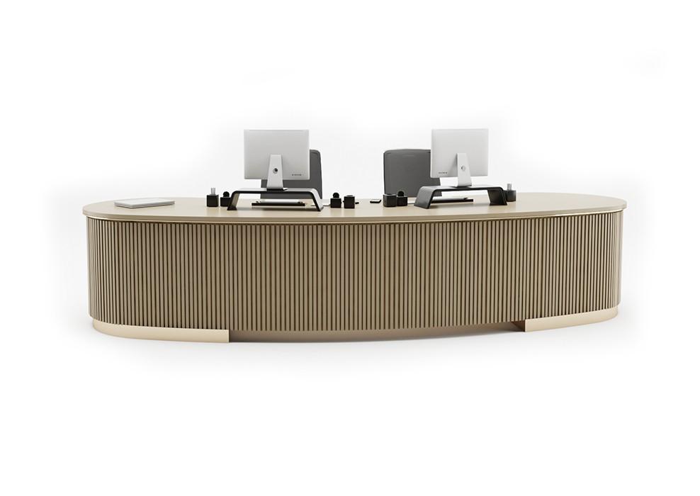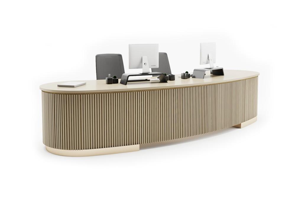 Рецепция CADIZ предлага естетически привлекателно и съвременно решение за вашия бизнес. Благодарение на своя овален дизайн, съчетава функционалност и уникален стил, като същевременно създава усещане за гостоприемство за посетителите.