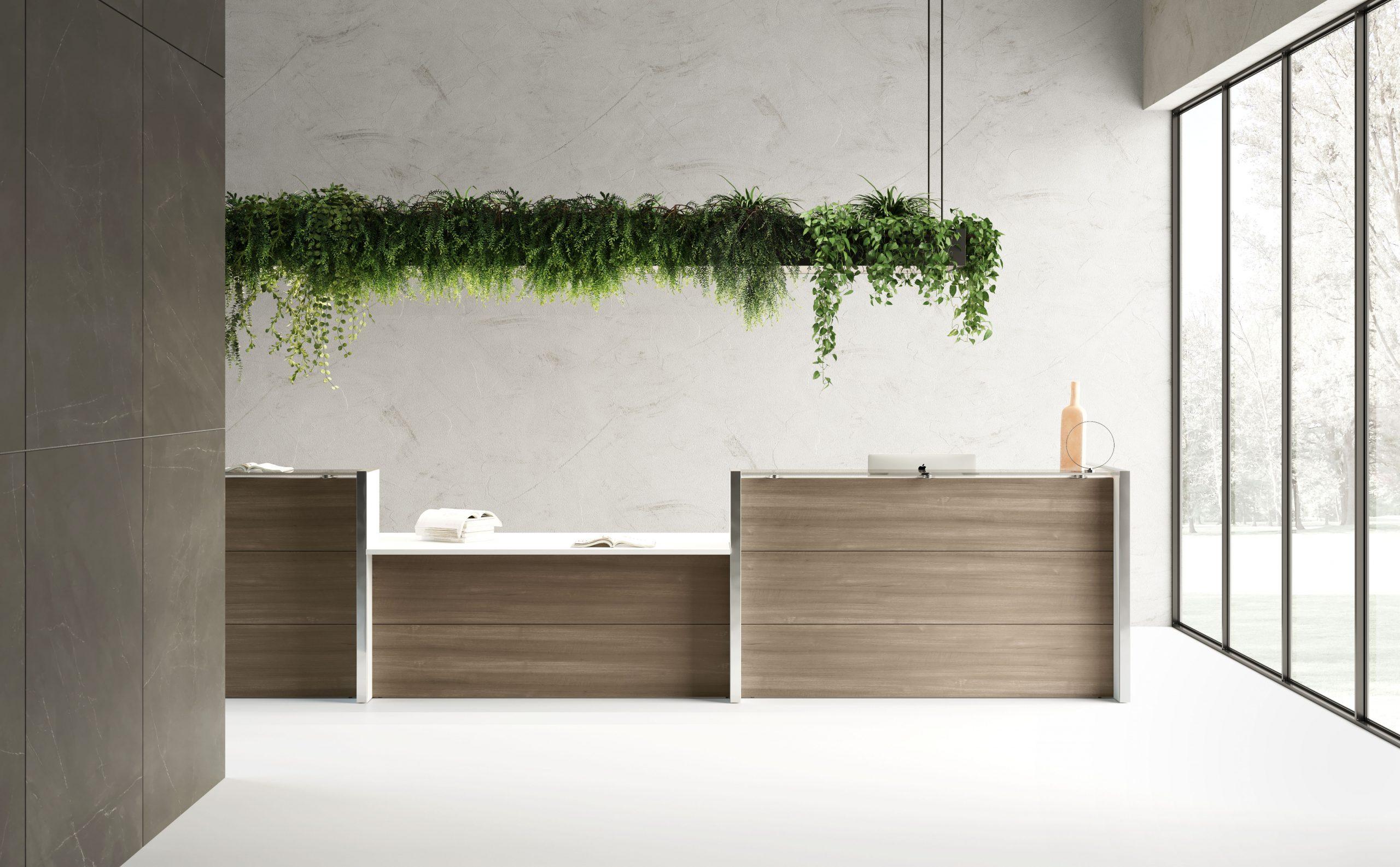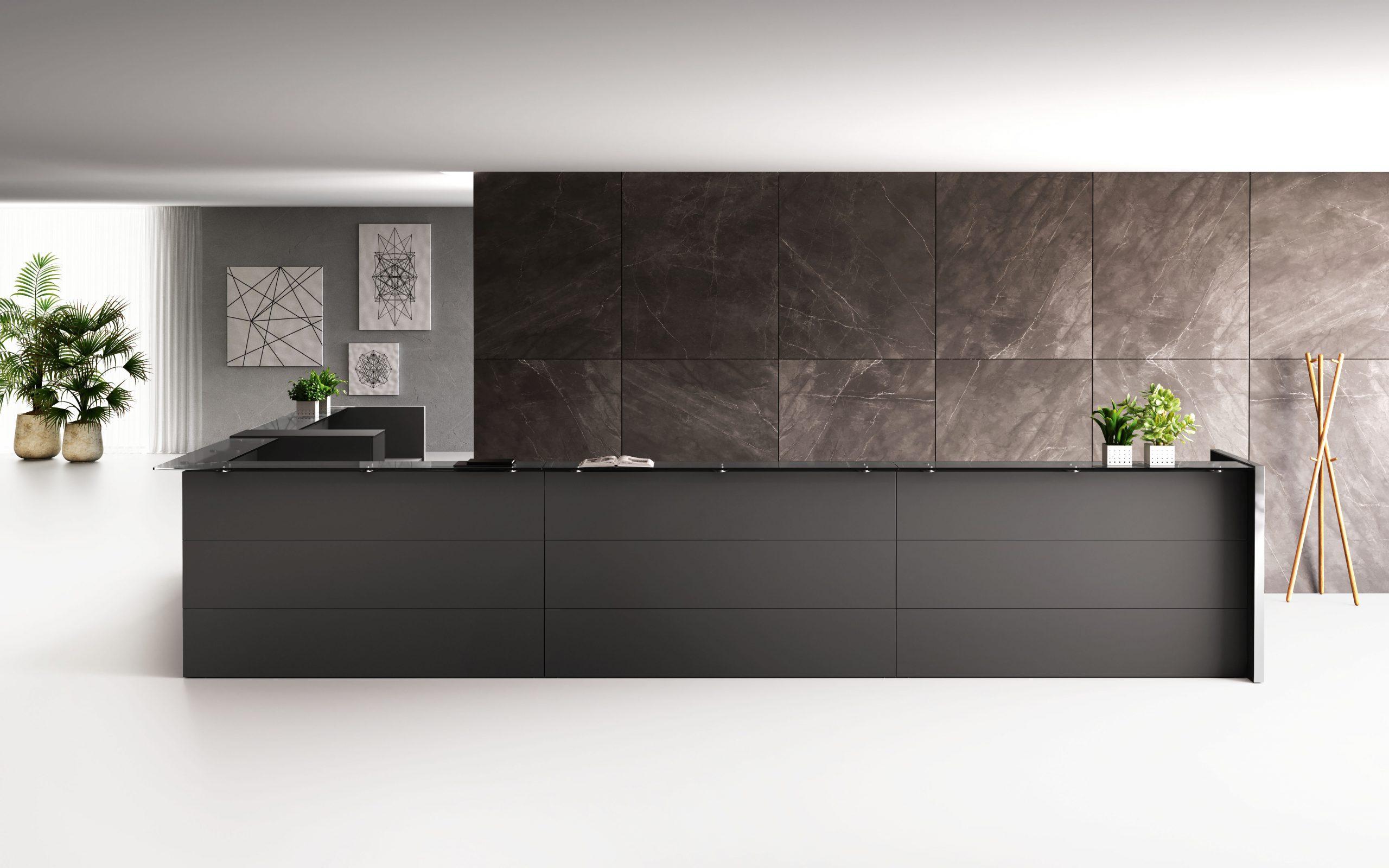 Рецепцията NICE 01 е проектирана от дизайнерския екип на LAS Mobili. Тя ще ви помогне да създадете запомнящо се впечатление за вашите офис и фирма, като няма да останете незабелязани. Колекцията NICE включва голямо разнообразие от модули и допълнителни елементи, които могат да бъдат използвани за моделиране на практична и многофункционална зона за посрещане на клиенти според индивидуалните изисквания и дизайн. Серията се отличава с несравнима комбинация от стил, контрастни материали, цветове и текстури, както и елегантна комбинация от покрития, използващи закалено стъкло, МДФ с LED подсветка.