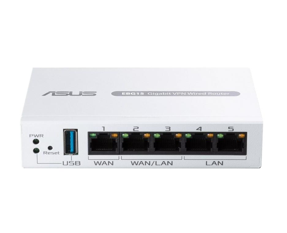 Рутер Asus Business Gigabit VPN wired router, ExpertWiFi EBG15, 1 gigabit WAN+2 gigabit WAN/LAN, USB port backups, Bluetooth® 3.0, SDN, customized guest portal, Commercial-Grade Network Security & VPN, wall mounting, White