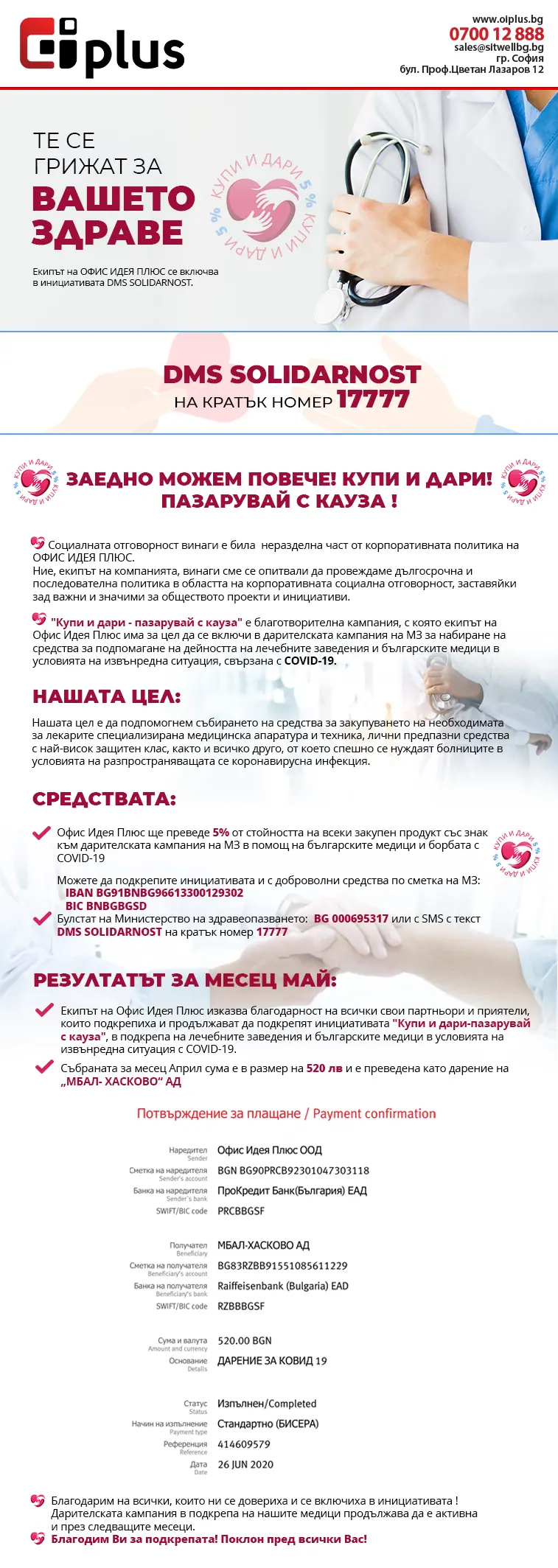 С Благодарност за кампания "Купи и дари- пазарувай с кауза" месец Май!