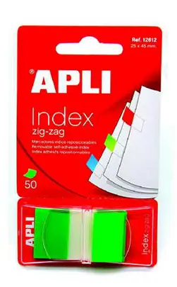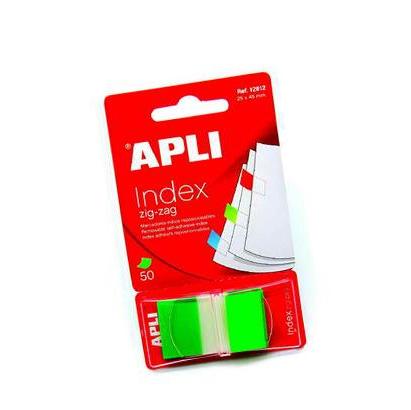 Самозалепващи индекси 25x45мм Zig-Zag в диспенсър зелено са цветни, самозалепващи, хартиени разделители - индекси зиг заг с мини дозатор. Подходящи са за отбелязване на страници в книги, документи, учебници, класьори, каталози. Изключително практични са, тъй като не закриват текста при маркиране, благодарение на прозрачния си лепящ край. Могат да се използват многократно, като не повреждат хартията и не оставят следи след премахването им.
