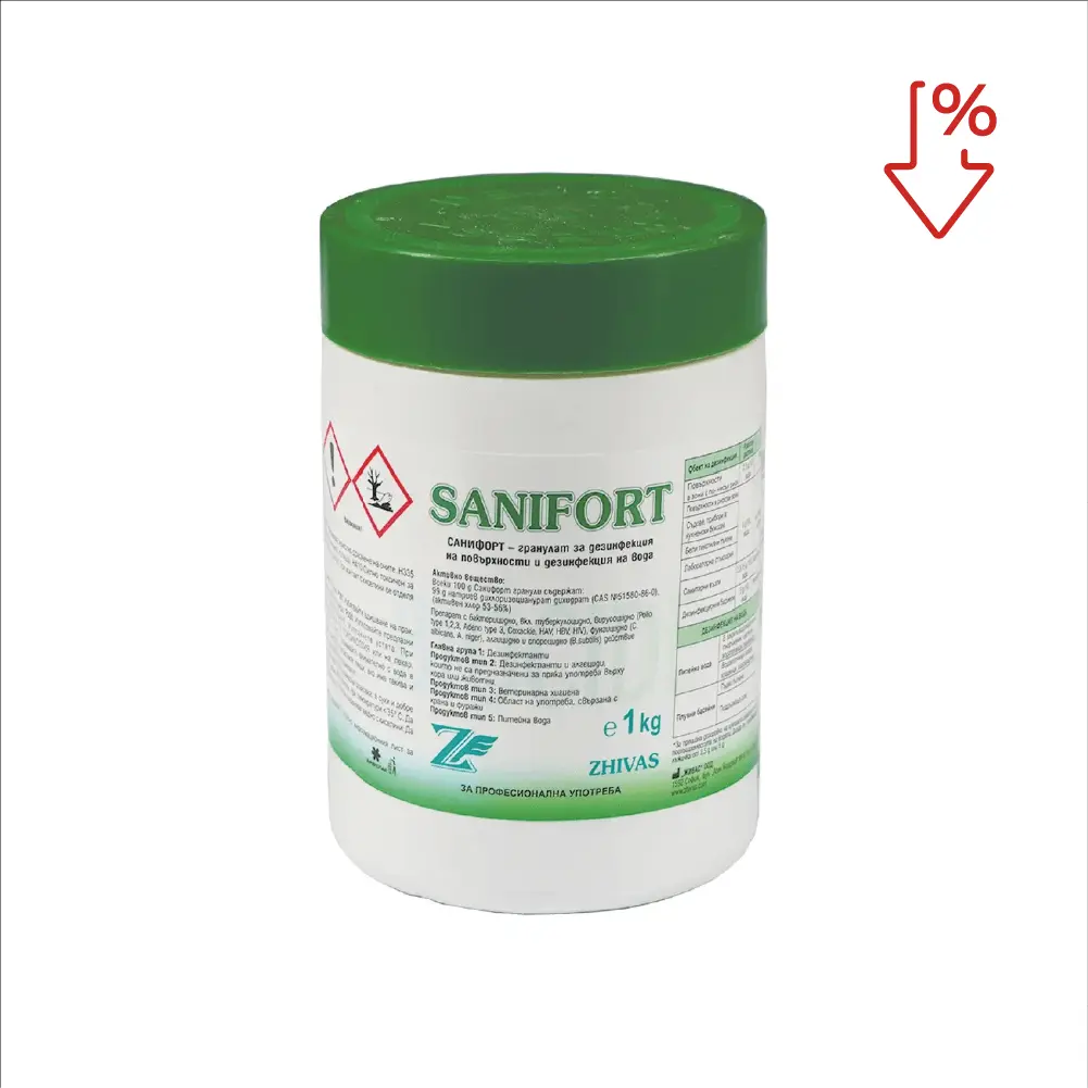 Санифорт гранулите за дезинфекция са сред най-желаните и ефективни препарати за дезинфекция на повърхности. Санифорт намира употреба в здравни и лечебни заведения, лаборатории, хотели и плувни басейни. Тъй като препаратът се използва в малки концентрации, той е нискобюджетен и практичен. За разлика от други хлорни препарати Санифорт гранули не оставят дълготраен неприятен мирис.