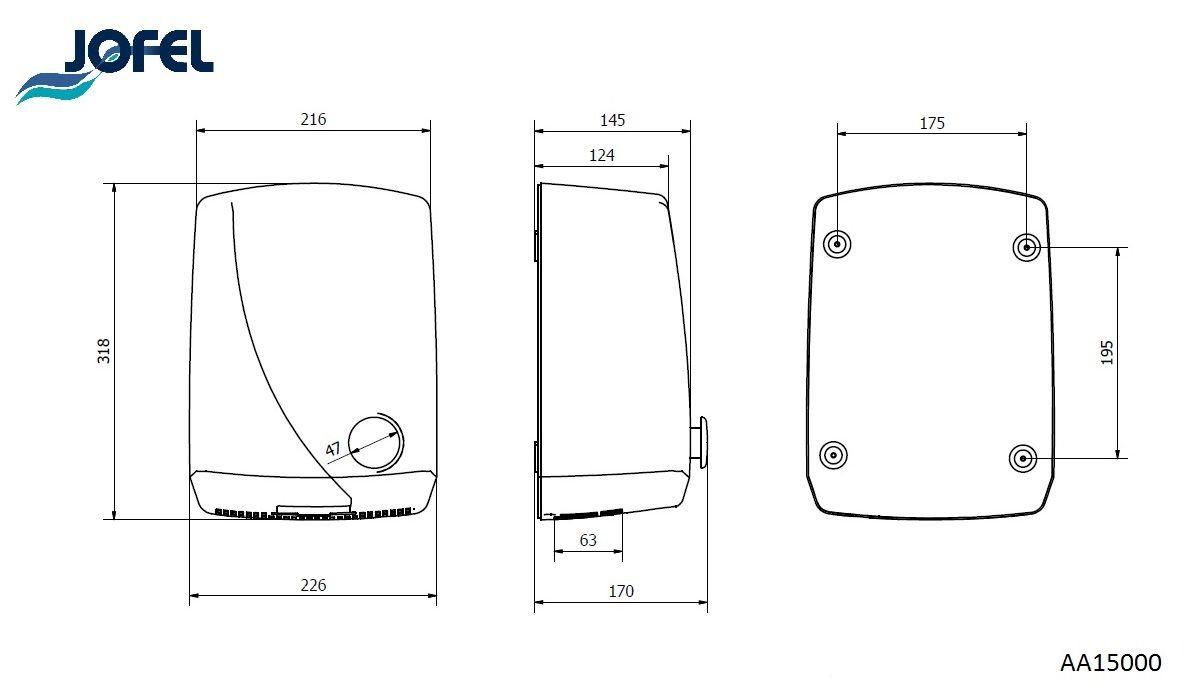 Сешоарът за ръце е с бутон за стартиране, автоматично спиране и ниско ниво на шум. Проектиран е за места със среден трафик на хора.