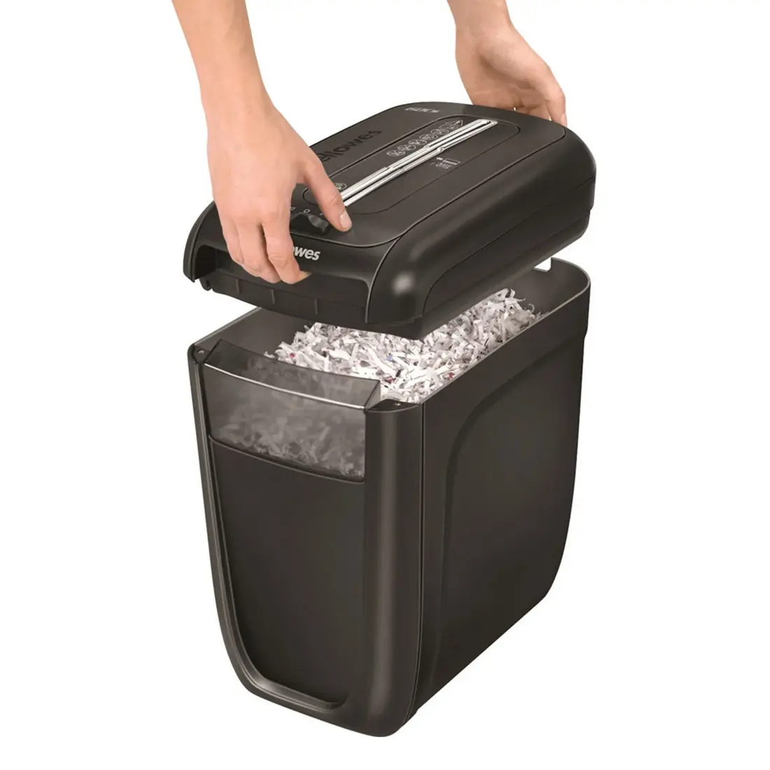 Шредерът Fellowes Powershred Cross-Cut 60CS унищожава до 10 листа едновременно чрез кръстосано рязане на късчета с размери 4x40 mm. Патентованата технология SafeSense незабавно спира шредера, когато ръцете допрат входа за поставяне на хартия. Унищожава кламери, телчета от телбод и кредитни карти.