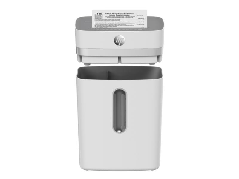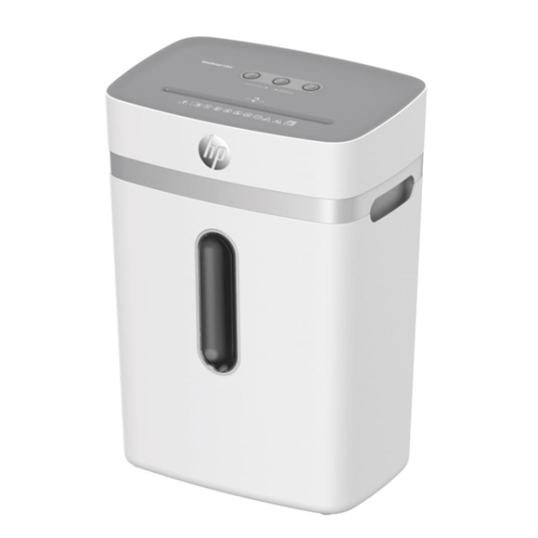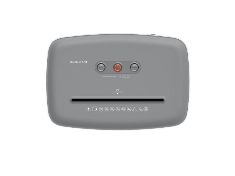 Компактният HP OneShred 12CC нарязва вашите чувствителни документи на изрезки с размери 4 mm x 35 mm. Надеждният шредер за хартия впечатлява с високо ниво на сигурност P-4 и по този начин отговаря на изискванията на GDPR. Със скорост на рязане от 1,8 метра в минута, този модерен шредер за документи бързо унищожава до 12 листа наведнъж. Ако случайно сте подали повече от 12 листа, хартията се подава автоматично обратно благодарение на функцията за автоматично връщане, която противодейства на засядането на хартия. Няма нужда да премахвате телчета и кламери преди раздробяване, тъй като те , както и кредитните карти не създават на HP OneShred 12CC никакви проблеми.