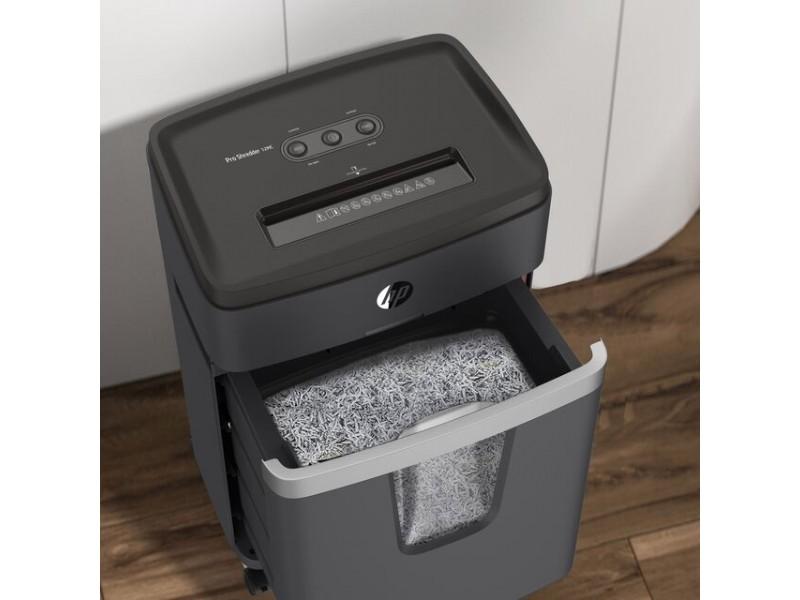 HP Pro Shredder 12MC е на колелца, интуитивен е за използване и работи с изключително тих работен шум от само 55 децибела. Изтеглящият се кош за унищожаване има капацитет от 25 литра, прозорче за наблюдение и се изпразва лесно.