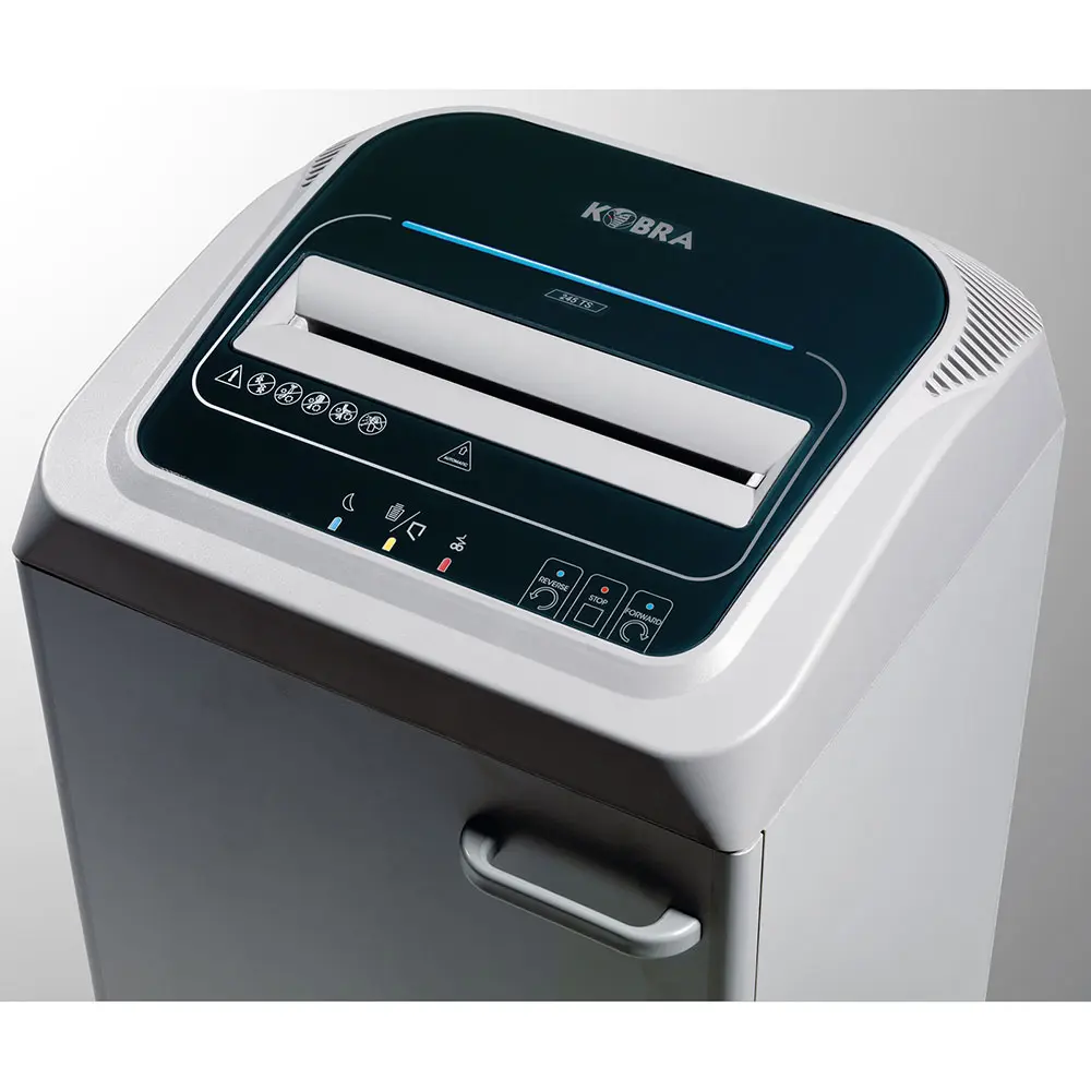 Шредер Kobra 245TS S4 SF е с 24-часов непрекъснат режим на работа, без работни цикли или периоди на охлаждане. Шредерът е с термична защита на двигателя, а ножове за рязане са от закалена стомана. Енергоспестяващият режим ENERGY SMART е в готовност за работа само след 8 секунди. Автоматичен СТАРТ & СТОП чрез електронен датчик с функция на готовност. Функцията SAFETY STOP позволява автоматично спиране при изваждане на контейнера и/или при пълен контейнер, както и автоматична обратна функция в случай на заседнала хартия.