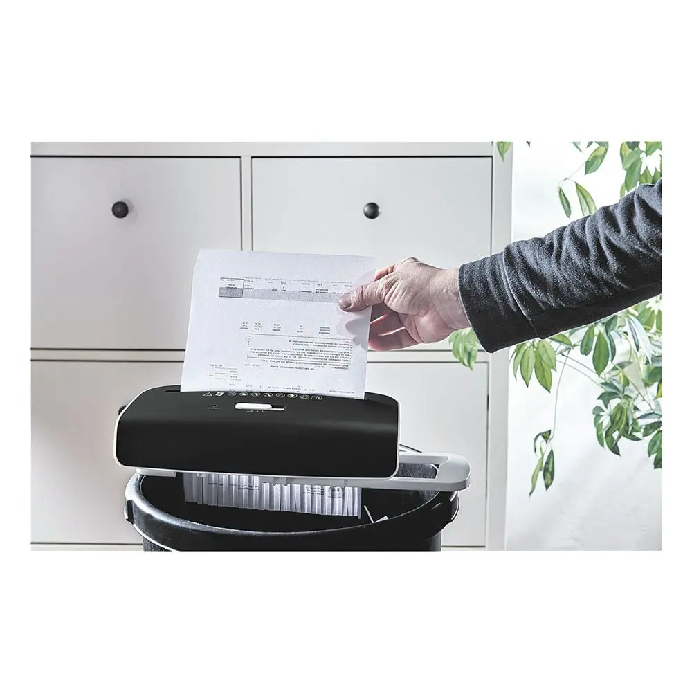 Шредер Monolith MA501-17B с кош за отпадъци с обем от 7 литра. Удобна функция за автоматично стартиране и спиране. Унищожава до 6 листа (A4/ 80 гр) наведнъж, в случай на заседнала хартия, шредерът автоматично връща хартията.