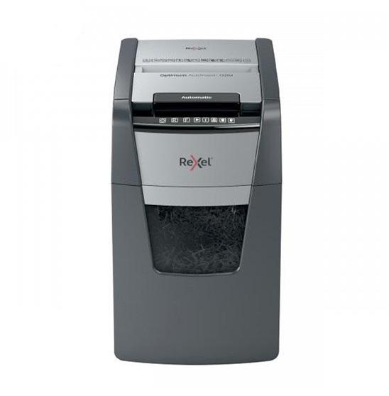 Автоматичният шредер Rexel Auto+ 150M може да унищожава до 150 листа А4 формат (80гр) наведнъж на парченца с размер 2x15 мм (степен на сигурност P-5). Тази машина с автоматично подаване е усъвършенстван офис шредер, разполагащ с 44 литров изваждащ се кош. Не е необходимо предварително да премахвате телбод или кламери, машината прави това вместо вас. Автоматично подаване до 100 листа хартия А4 (80гр) наведнъж. Ръчно машината може да унищожава до 6 листа.