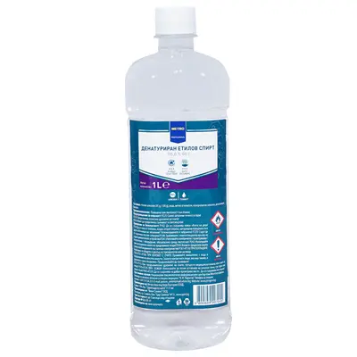 Денатуриран етилов спирт 95 об. %, предназначен за дезинфекция на ръце, кожа и други повърхности. Продуктът е само за външно приложение.