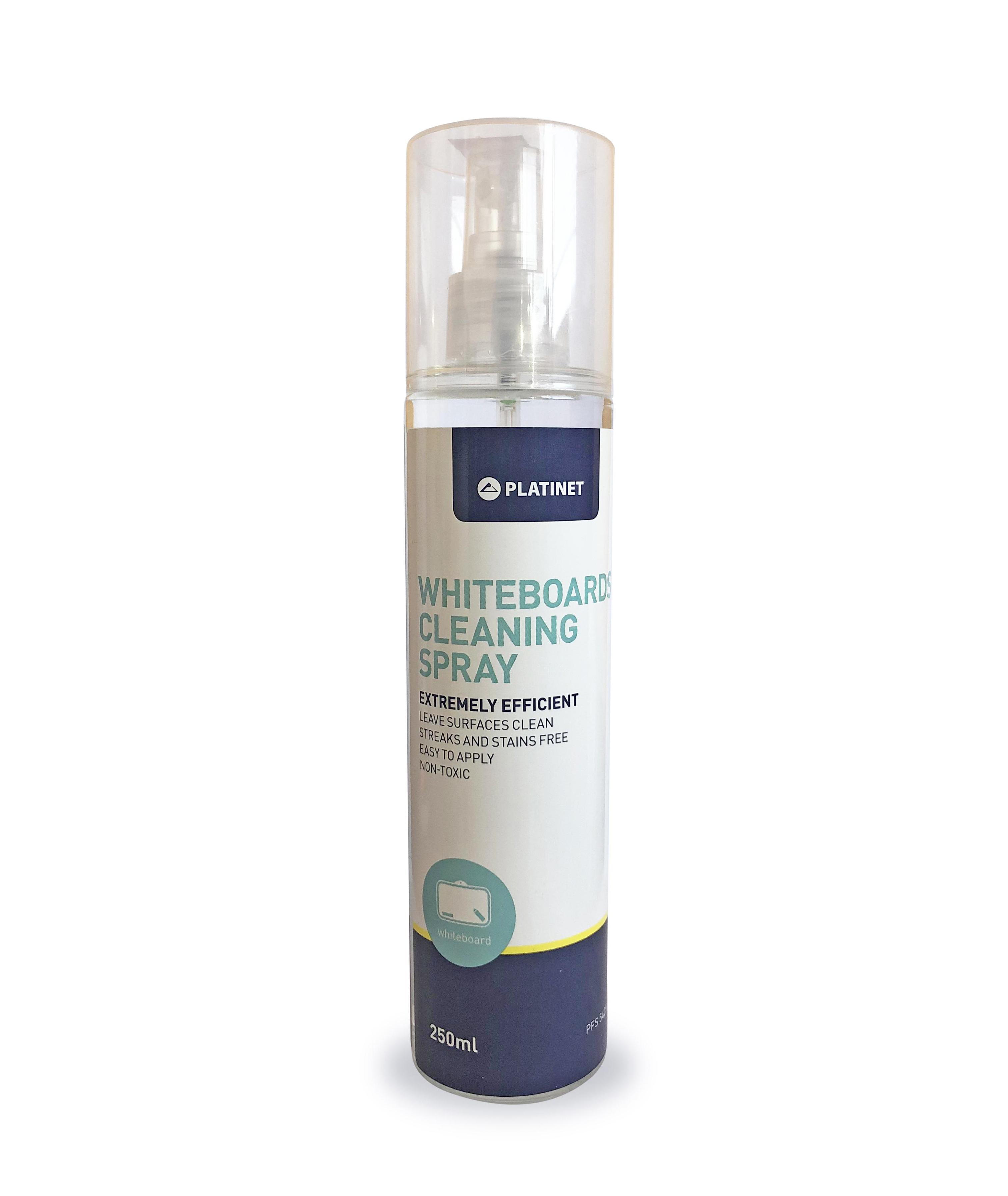 Спреят за бяла дъска 250 мл е подходящ за бързо и безпроблемно почистване повърхността на бели дъски. Специално разработен за училища, колежи и университети. Просто напръскайте и забършете повърхността с кърпа без влакна и след това полирайте със суха кърпа. Подходящ за всички маркери за бяла дъска и писалки с филц.