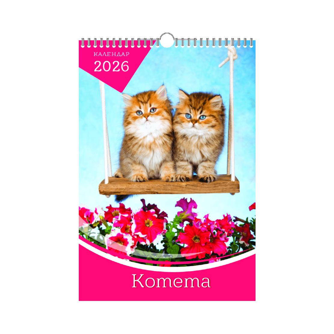 Стенен календар „Котета“ с готов дизайн, създаден за любителите на котки и домашен уют. Всеки лист представя очарователна снимка на коте, която носи настроение и усмивка през цялата година.