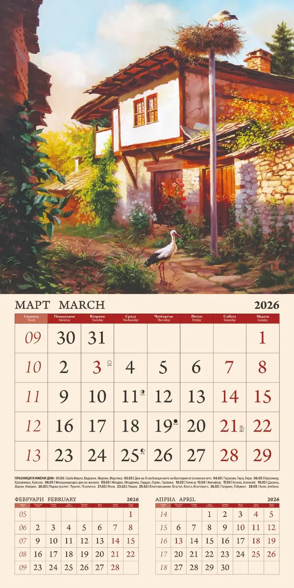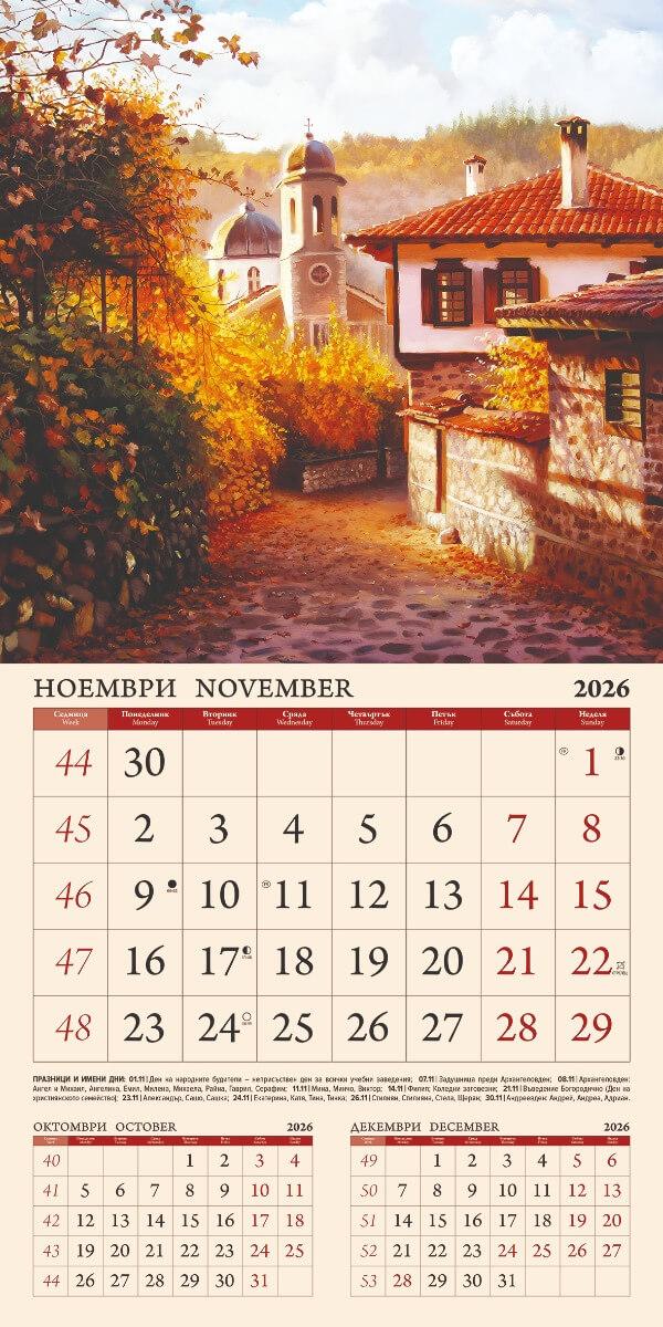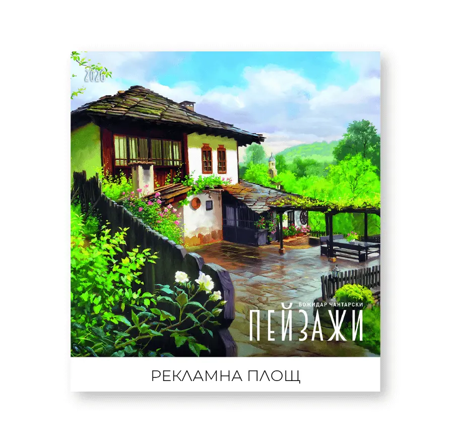 Стенен луксозен календар 12 листа Пейзажи Акварел с готов дизайн, изобразяващ красиви акварелни пейзажи. Идеален за дома, офиса или фирмени подаръци, този календар съчетава стил, изисканост и практичност.