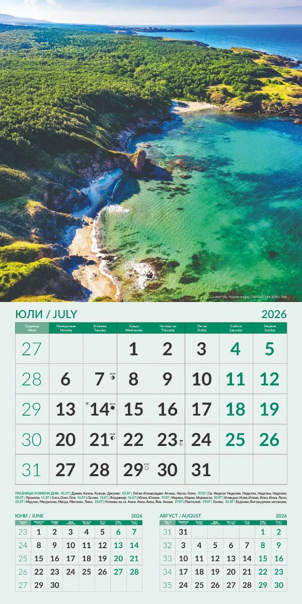 Стенен луксозен календар 12 листа Природа от България с готов дизайн, представящ красиви природни пейзажи от България. Идеален за дома, офиса или фирмени подаръци, този календар съчетава естетика, функционалност и висококачествени материали.