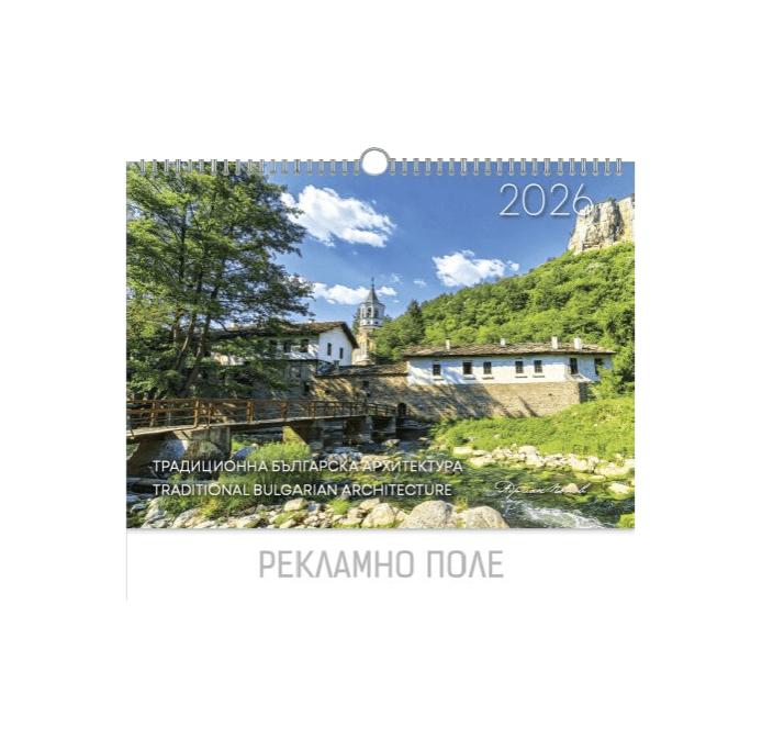 Стенен луксозен календар Българска архитектура с 13 листа е изискано решение за почитателите на културното наследство и изящната архитектура на България. Всеки лист представя впечатляващи снимки на възрожденски къщи, старинни сгради и архитектурни детайли, отразяващи уникалния дух и историята на страната.